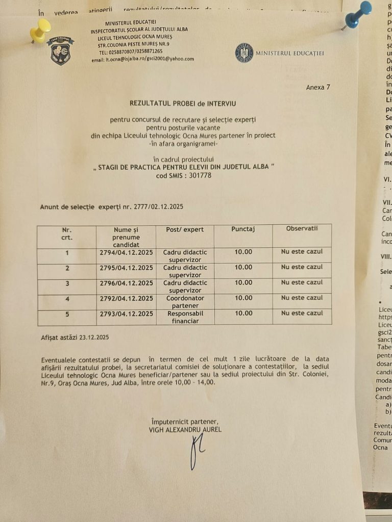 Anunț rezultate probă interviu